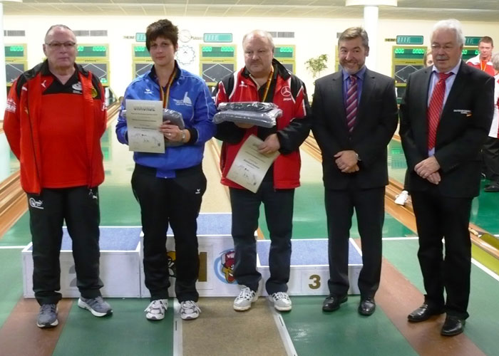 Den Höhepunkt der drei Veranstaltungstage bildete schließlich die abschließende Siegerehrung. Gastgeber Uwe Hartmann vom LV Hessen bedankte sich insbesondere bei seinen Mitarbeitern, den Schiedsrichtern und dem Ausrichter vom VWSK Wiesbaden für die vielen Handgriffe, die zum Gelingen dieser Deutschen Meisterschaft beitrugen. Als Ehrengäste wohnten Franz Schumacher (DKBC-Vizepräsident) sowie Peter Bauer (DKBC-Breitensportreferent) dem feierlichen Moment bei. In ihren Grußworten beglückwünschten sie alle Teilnehmer und zeigten sich von den erbrachten Leistungen sichtlich beeindruckt. Stolz nahmen die Preisträger ihre Medaillen und Pokale entgegen.