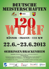 Die deutschen Einzel-Meisterschaften über 120 Wurf für Frauen, Männer und U23 finden am 22. und 23. Juni 2013 in Brackenheim (Vorlauf/Viertelfinale U23) und Öhringen statt.