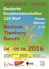 Die deutschen Einzel-Meisterschaften über 120 Wurf für Frauen, Männer und U23 finden am 4. und 5. Juni 2016 in Bautzen, Thonberg und Baruth statt.