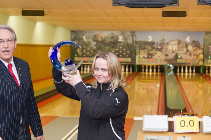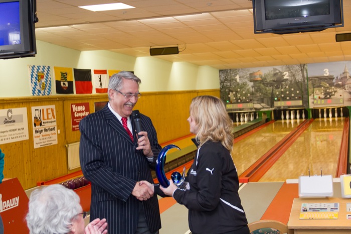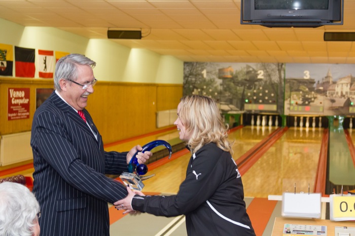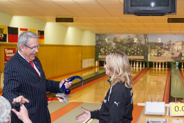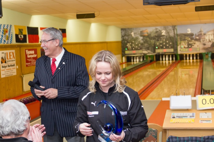 Jürgen Franke (Präsident DKBC) und Daniela Kicker bei der Überreichung des Preises als "Sportlerin des Jahres 2011 im DKBC"