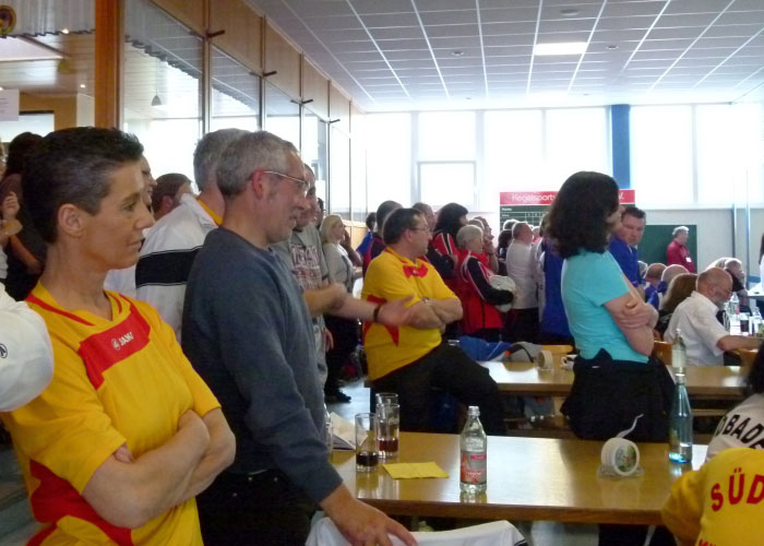 Am Nachmittag wurden die 4. Europameisterschaften der EBFU im Breitensportkegeln feierlich in der Heinz-Rösch-Kegelsporthalle in Freiburg eröffnet. Am Start sind Mannschaften aus Vorarlberg, Tirol, Oberösterreich, Südbaden, Rheinland-Pfalz, Thüringen, Baden und Bayern.