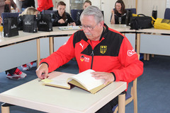 Im Anschluss an den kleinen Sektempfang, zu dem die Sportler auch ein Präsent der Gemeinde Speichersdorf in Form von Rosenthal-Porzellan erhielten, trugen sich die Sportler, Delegationsmitglieder und Gemeinderäte in das Goldene Buch der Gemeinde Speichersdorf ein. Porsch wünschte den beiden Mannschaften beim Abschied noch „Gut Holz“ für den weiteren Turnierverlauf.