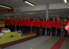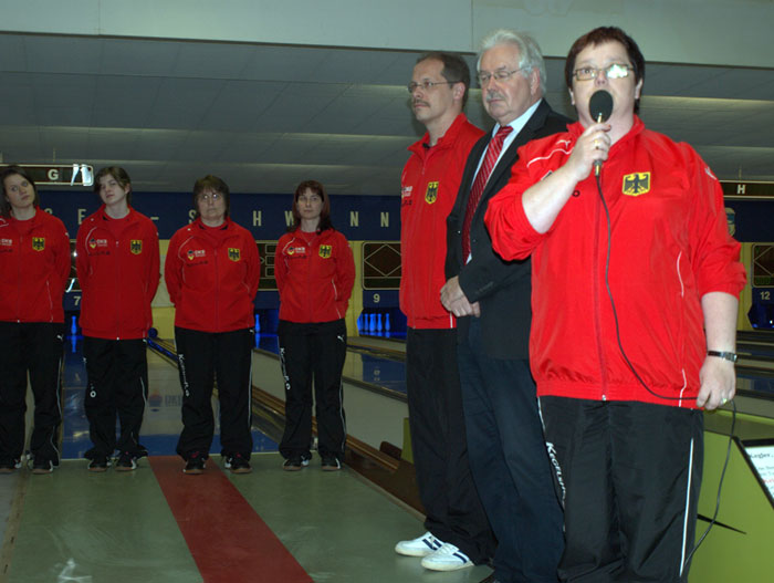 Bei den Deutschen Jugend Meisterschaften werden am Pfingstsonntag die Teilnehmer für die Einzel-Fianls in der U14 und U18 morgen ermittelt. Am Start sind 96 Aktive, die ganz besondere Gäste begrüßen durften, die komplette U18-Nationalmannschaft war angereist und wurde herzlich von den Mädchen und Jungen begrüßt. Die Vorsitzende der DKBC-Jugend, Ulrike Klaus, und DKBC-Vizepräsident Franz Schumacher hielten kurze Ansprachen.