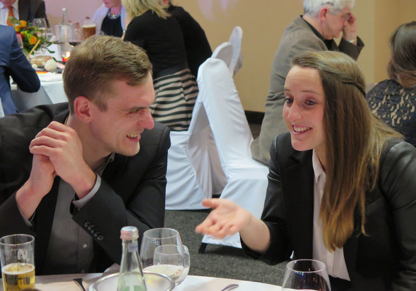 Gemeinsamkeiten und Unterschiede in der Disziplin Schere-Kegelsport: Sowohl Svenja Lambert als auch Robert Heinichen schnappten sich bei der vergangenen U24-WM den Einzeltitel. Die Saarländerin, die „nebenbei“ auch in der Regionalliga Fußball spielt, schilderte, wie sie am Abschlusstag der WM als „Einpeitscherin“ mit einer „HUMBA“ die Samba-Trommeln der Brasilianer übertönte. Der BWL-Student, der durch eine Schulfreundin in der ersten Klasse zum Kegeln „verführt“ wurde findet den Kegelsport umwerfend, weil er sich – anders als etwa beim Fußball – als Perfektionist immer gerne am Maximum orientiert. Auch, wenn diese utopische Zahl bei einem Wettkampf über 120 Würfe – was nach Adam Riese 1080 Kegel ergäbe – wohl nur in der Theorie erreichbar ist: Mit 25 „Neunern“ in Serie und einem Bestergebnis von 965 Kegeln war der Mitzwanziger bereits relativ nah dran.