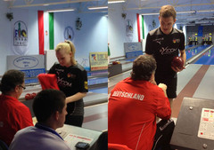 Der Österreicher Patrick Fritz war 2012 in Bautzen U23-Vizeweltmeister im Tandem Mixed. Doch nach dem Spiel jubelte nur noch Marvin Bischler. Der Deutsche zufrieden: „Auf der ersten Bahn spielten die Nerven noch nicht mit, aber das verging. Im Großen und Ganzen war es klasse. Und die letzte Bahn wollte ich eigentlich auch gewinnen, aber dann war irgendwie der Wurm drin. Jetzt halte ich ein bisschen Abstand, schaue mir auch nicht meinen Gegner an, dafür aber zur Einstimmung das Viertelfinale mit Nicole.“