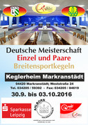 Am 3./4. Oktiober 2016 fanden in Markranstädt die Deutschen Meisterschaften Breitensport Einzel und Paare statt. Gesucht wurden insgesamt elf neue Meister in den Disziplinen Einzel sowie Paare.