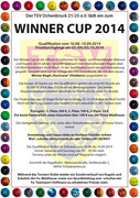 Der Winner Cup ist ein offenes Einzelturnier für Sport- und Freizeitkegler (Männer und Frauen) ab 14 Jahren und beginnt mit der Qualifikation, die am 16. August 2014 startet und bis zum 10. September 2014 andauert. Gespielt wird nach den internationalen Regeln über 120 Wurf kombiniert (4x30 Wurf). In der Qualifikation wird rein auf Kegelwertung auf der Anlage des TSV Ochenbruck, die mit dem neuen Winner Kegel „Hurricane“ (Holzkern) ausgestattet ist, gespielt.