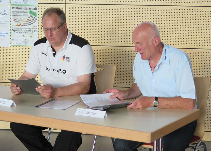 Im Vorfeld der offiziellen Titelkämpfe für U18-, Frauen- und Männer-Auswahlmannschaften aus rund 20 Nationen bildet der U14-Weltpokal am 7. und 8. Mai 2015 eine Art Generalprobe für die Organisatoren. “Wir möchten den Kegelfreunden eine hochklassige und spannende Weltmeisterschaft bieten”, freut sich Wilhelm Kreutzer, Vorsitzender des SKC Speichersdorf, bereits auf das größte Sportereignis der letzten Jahre in Speichersdorf. Zugute kommt den Organisatoren der Wettkampfmodus: So werden die je drei Vorrundenspieltage der Frauen und Männer immer komplett an einem Tag über die Bühne gehen. „Das bedeutet, dass wir jeden Tag eine deutsche Mannschaft in der Halle haben werden”, betont Kreutzer.