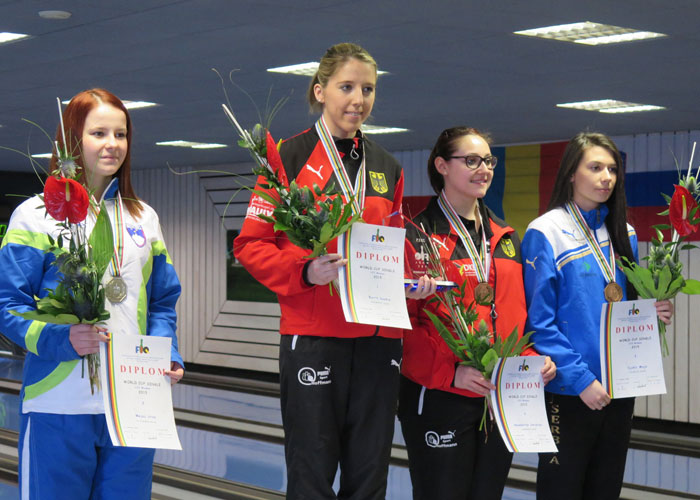 Am Sonntagmorgen setzte sich Fabian Lutz im Schlussspurt gegen den stark aufkommenden Janos Brancsek bei Satzgleichstand trotz Satzverlust im Finalsatz über die Gesamtkegel mit 609:601 durch, Saskia Barth dagegen zog souverän ihre Kreise und bezwang Anita Mehesz (Ungarn) 3:1 und lag vorzeitig uneinholbar 3:0 vorn. Das Duell stand auf hohem Niveau, das Gesamtkegelergebnis macht dies deutlich (622:620). Christina Neundörfer fand außer im 2. Satz (170:145!) nicht ganz in ihre Konstanz vom Freitag, lieferte aber Ursa Mejac einen großen Kampf, den die Slowenin mit zwei Auftaktneunern im letzten Räumen letztlich 3:1 (595:592) für sich entscheiden konnte.
