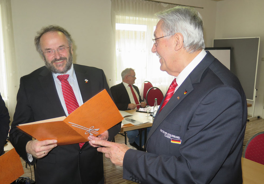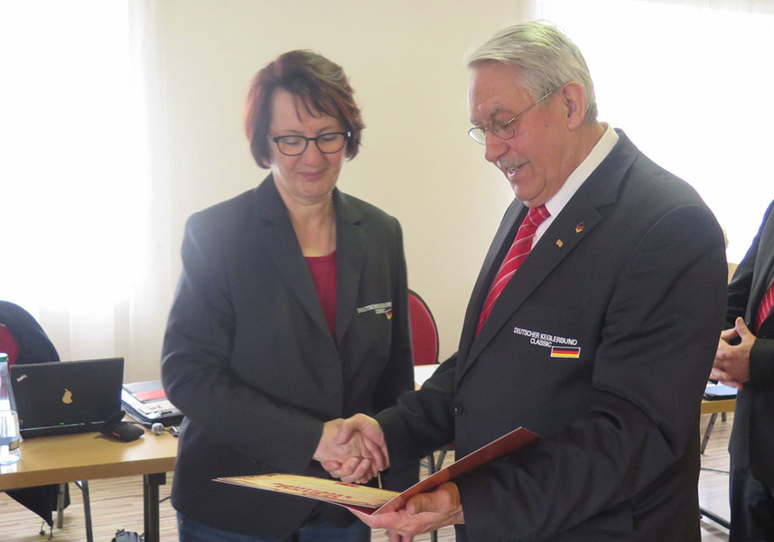 Auch Karl Welker als stellvertretender Sportdirektor steht nicht mehr zur Wahl an und wurde DKBC-Ehrenmitglied und erhielt die Urkunde aus den Händen von DKBC-Präsidenten Jürgen Franke.