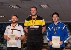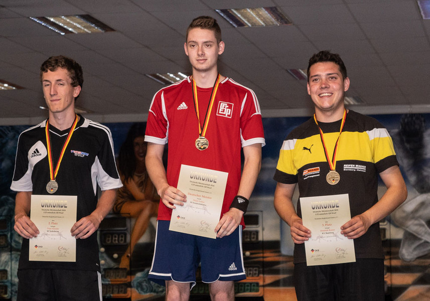 Am Ende schauten sich alle an. Titelverteidiger Dejan Lotina aus Friedrichshafen hatte auf der letzten Bahn den bis dahin führenden Jedesheimer Timo Alander noch abgefangen, beide kamen auf elf Punkten auf 602 Kegel. Am Ende entschieden die Räumer – und da war Lotina knapp im Vorteil und konnte als einziger Meister seinen Vorjahrestitel verteidigen. Dominik Kunze mischte lange vorn mit, doch durch Gesamtergebnis hätte er im letzten Satz Platz 1 belegen müssen, am Ende wurde er Dritter – genauso wie im Vorjahr.