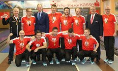 Tags darauf sicherte sich der SKC Victoria 1947 Bamberg durch ein 7:1 gegen Ingolstadt die bereits 17. deutsche Meisterschaft. Wiederum ließ es es sich das DKBC-Oberhaupt nicht nehmen, die Gratulation seitens des Verbandes persönlich vorzunehmen. In seiner Laudatio betonte er: "Ihr seid ein Aushängeschild des deutschen Kegelsports und ich wünsche euch auch für das Champions League-Finale in Straubing alles erdenklich Gute."
