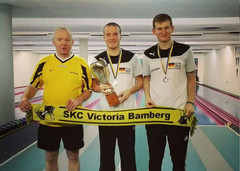 Bereits am Donnerstag machten sich Thomas Müller und Christopher Wittke auf den Weg in das 1500 Kilometer entfernte Finspang in Schweden. Die Schwedisch Open sind ein vor allem im Norden beliebtes internationales Kegelturnier, bei dem sich vor allem Teilnehmer aus Schweden, Dänemark und Estland ein traditionelles Stelldichein geben. Ergänzt wurde das Teilnehmerfeld in diesem Jahr noch durch Kegler aus der Tschechischen Republik spwie die beiden Bamberger Nachwuchstalente. Insgesamt beteiligten sich 33 Männer und 13 Damen an den Schwedisch Open, die von Verbandspräsident Hakan Strömberg wie immer bestens organisiert waren. Am Samstag fand die Qualifikation über 120 Wurf auf Kegelwertung statt. Die beiden Deutschen gingen gleichzeitig auf die Bahnen und sicherten sich mit Ergebnissen von 580 (Müller) und 571 (Wittke) die Spitzenpositionen, die sie am Sonntag im Endlauf der zwölf Besten natürlich verteidigen wollten. Während sich Müller im Endlauf nochmals steigern konnte und mit 591 Kegeln das Turnierbestergebnis erzielte, lief es bei Wittke nicht mehr ganz so gut. Mit 538 Kegeln im Endlauf konnte er aber seinen 2. Platz verteidigen. Mit insgesamt 1171 Kegeln holte sich Müller den Sieg bei den Schwedisch Open 2017. Bronze ging an den estnischen Nationalspieler Gert Piksar, der sich im Endlauf deutlich auf 551 Kegel steigerte und damit sechs Plätze gut machte, nachdem er die Qualifikation (523) nur als Neunter beendet hatte.
