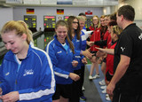 Zahlreiche Ehrengäste fanden am Samstag um 13 Uhr den Weg auf die Kegelanlage der TSG 1861 Kaiserslautern, darunter Vertreter der DKBC-Jugend sowie des Sportbundes Pfalz, um bei der Eröffnung des Länderspiels hautnah dabei zu sein. Zu diesem Zeitpunkt hatten die Jugendlichen bereits den Ausdauerlauf in der Barbarossahalle absolviert, der, wie das Seilspringen nach dem Kegeln, in die Gesamtwertung mit eingerechnet wurde.