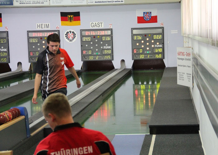 Auf der Kegelbahn nutzten die Gäste aus Mitteldeutschland die optimalen Bahnverhältnisse und ebneten sich so den Weg zum Erfolg. Herausragend einmal mehr der dreifache U18-Weltmeister Dominik Kunze (Auma), der mit 649 Kegeln in seinem letzten Spiel in dieser Altersklasse nochmals einen Glanzpunkt setzte. Die zweifache Medaillengewinnerin der Deutschen Meisterschaften, Teresa Lehmann (Pirmasens), erzielte mit 592 Kegel das beste Ergebnis der Gastgeber. In der Athletik blieb Thüringen ebenfalls vorne, hier boten die Gastgeber jedoch mehr Paroli als auf der Kegelbahn.