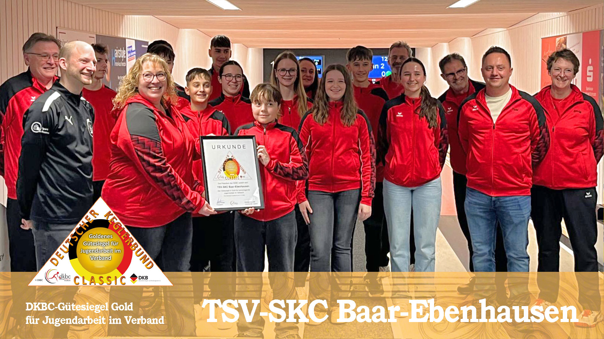 Beim Endlauf der Jugendmeisterschaften des Kreises Nord im Bezirk Schwaben in Eitensheim überreichte Michael Parzefall, Vorsitzender der DKBC-Jugend, am 8. Februar 2026 das DKBC-Gütesiegel in Gold an den TSV-SKC Baar-Ebenhausen. Die Urkunde nahm die Jugendwartin Ramona Trautner entgegen. Der Verein wurde bereits 2023 mit Silber ausgezeichnet und kletterte nun auf die höchste Stufe.