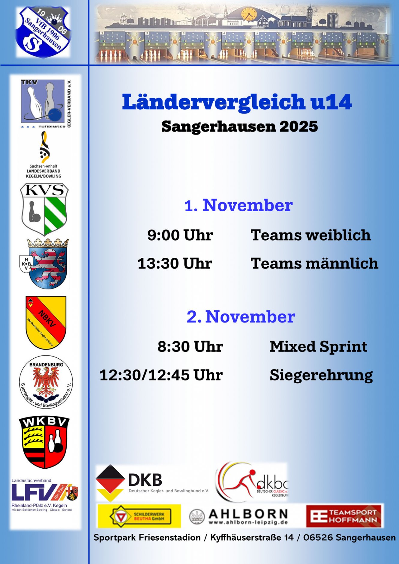 Der U14-Ländervergleich fand am 1. und 2. November 2025 in Sangerhausen statt. An den Start gingen die Landesverbände Brandenburg, Hessen, Nordbaden, Rheinland-Pfalz, Sachsen, Sachsen-Anhalt, Thüringen und Württemberg.