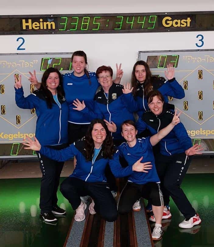 Schluss (4:2/22): Im Finaldurchgang kam Liedolsheim heran, zunächst in den Duellen, die allesamt vorzeitig entschieden wurden und in denen der Titelverteidiger auf 2:4 verkürzen konnte. Und schließlich noch im Gesamt durch starke Schlussbahnen von Yvonne Schneider (663) und der Partiebesten Saskia Seitz (674). Doch da Romy Joppert den Teambestwert des Rekordmeisters auf 664 stellte, waren es am Ende immer noch 22 Kegel mehr auf dem Totalisator für Victoria.