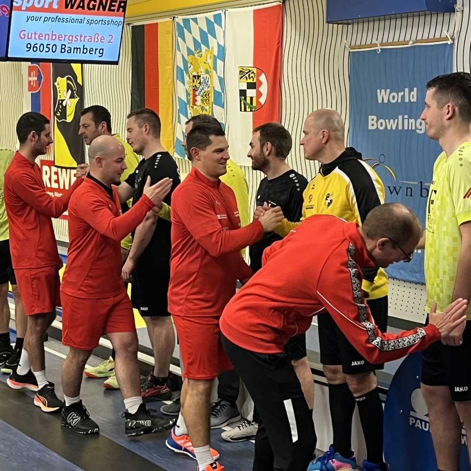 Schluss (4:2/0): Der Titelverteidiger stand vor dem Schlussdurchgang unter maximalen Druck und vor dem Verlust der Tabellenführung. Die Rot-Weißen konnten sich keine Duellniederlage mehr leisten, und mussten den Rückstand aufholen. Nach 60 Wurf waren die Gäste, die in allen Duellen führten, bereits auf 35 Kegel herangekommen. 30 Wurf darauf führte Zerbst erstmals in diesem Duell mit 20 Kegeln plus. Die Teambesten Lukas Huber und Daniel Barth (beide 667) hatten die Duelle vorzeitig eingetütet. Tim Brachtel (664) führte gegen Dominik Kunze 2:1/28 und ging mit 519 auf die Schlussbahn. Doch dann traf er in Wurf115 nur die Kegel1578, und benötigte für den Rest alle verbliebenen Würfe. Kunze spielte im drittletzten Wurf eine Neun und war dran, sicherte sich das Duell und Bamberg hatte plötzlich die Chance, sogar im Gesamt noch vorbeizuziehen. Fabian Lange spielte noch einmal ins volle Bild, Kunze hatte zwei Kegel stehen, während Lukas Huber für Zerbst auf 3687 beendete, Bamberg lag da nur sieben Kegel zurück. der Partiebeste Kunze (671) traf einen, Lange sechs - Gleichstand auf dem Totalisator und damit Bamberger Heimsieg in einem hochspannenden und emotionalen Classico.