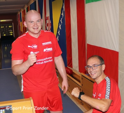 Rot-Weiß Zerbst (1862): Der Titelverteidiger tat sich schwer, geht aber nach dem bisherigen Teambestwert von Daniel Barth (Foto links) – einziger Zerbster unter den TOP10 des Tages – als Dritter in den zweiten Wettkampftag. Neumarkt und Orth sind nur 15 bzw. zehn Kegel voraus. Doch Vorsicht ist geboten, es folgen weitere drei Teams mit nur 15 bis 22 weniger auf dem Tabulator.